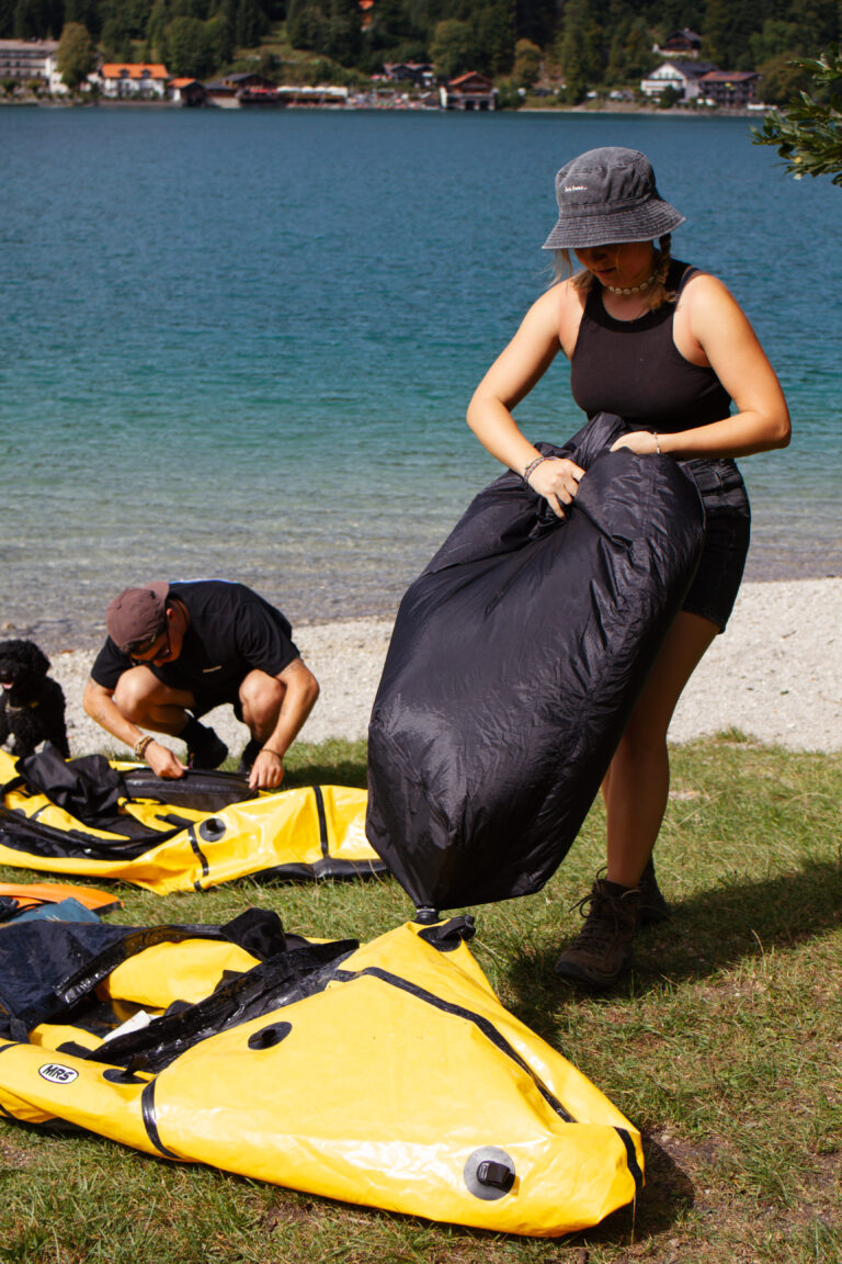 Dein zusätzliches Gepäck wird während der Tour entweder sicher am Campingplatz verwahrt oder von unserem Gepäcktransport zum nächsten Standort gebracht. Du trägst unterwegs lediglich den bereitgestellten Rucksack mit deinem Packraft, Zubehör, Wasser und Verpflegung.